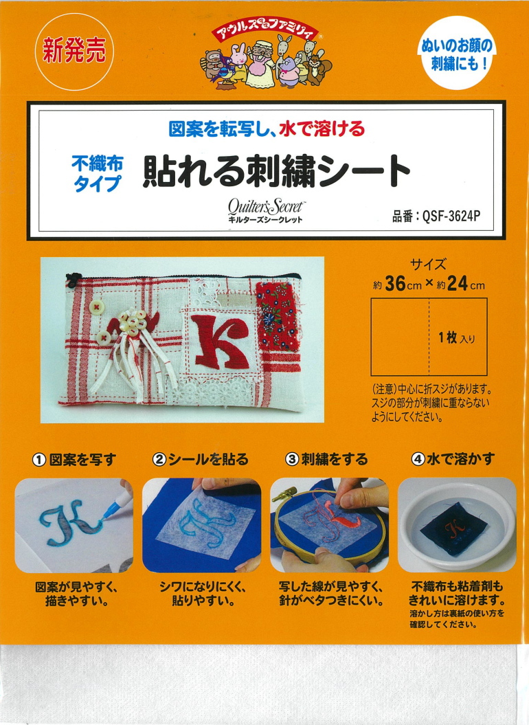 刺繍 ししゅう quilter's secret 水に溶ける 水でとける 水にとける