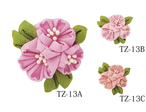 ちりめんカット布各種、キルト綿、ペップ、ブローチピン、作り方説明書