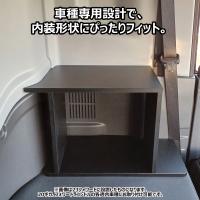 | 商品詳細 | 助手席後方の寝台スペースに設置するキャビネットです。 設置は置くだけの設計で助手席のリクライニング機構を使用して固定します。 |