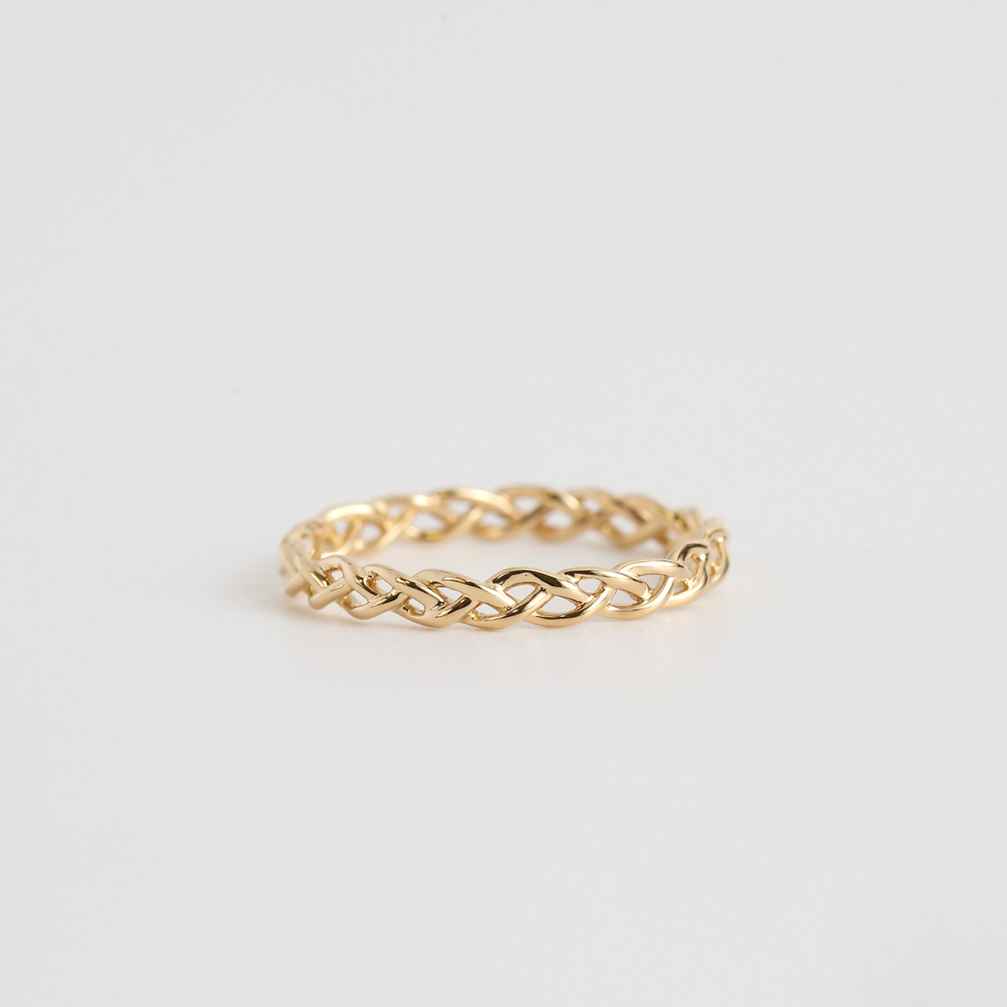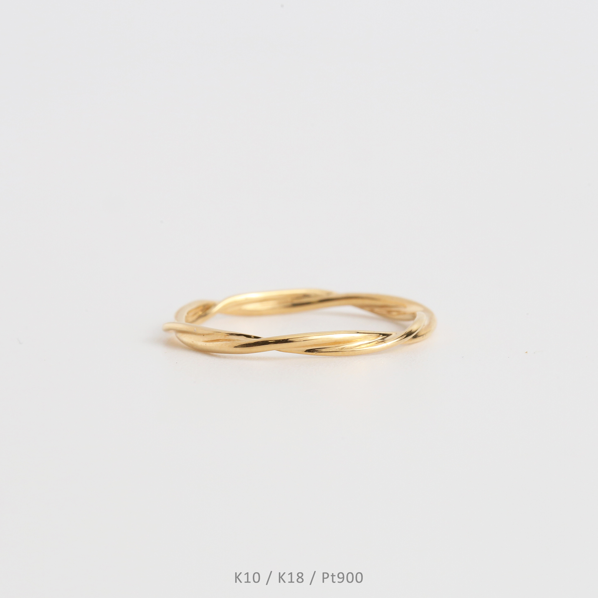 螺旋を描くように絡み合う蔦をモチーフにした、ナチュラルな気品漂うゴールドリング。程よいヌケ感を持たせたデザインは指にやさしく馴染みながらも一周に施されたツタが角度によって異なる表情を見せ、シンプルでありながら存在感を放ちます。