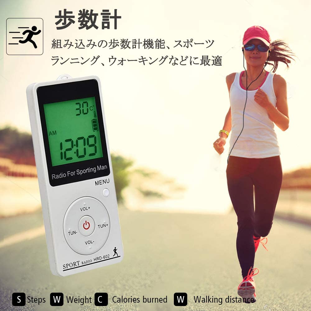 歩数/消費カロリー/歩行距離計算可能。1.57インチのLCDデジタルディスプレイと明るい緑バックライトを内蔵し、暗い環境でも便利にラジオを使用することができます!