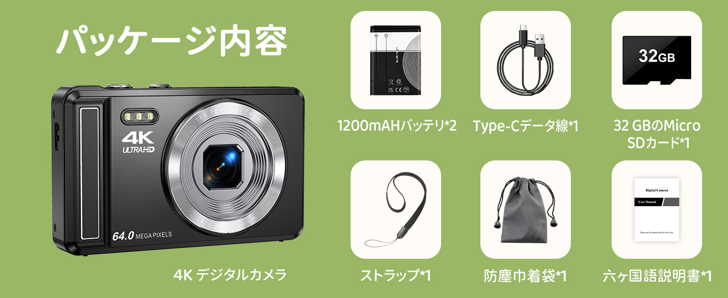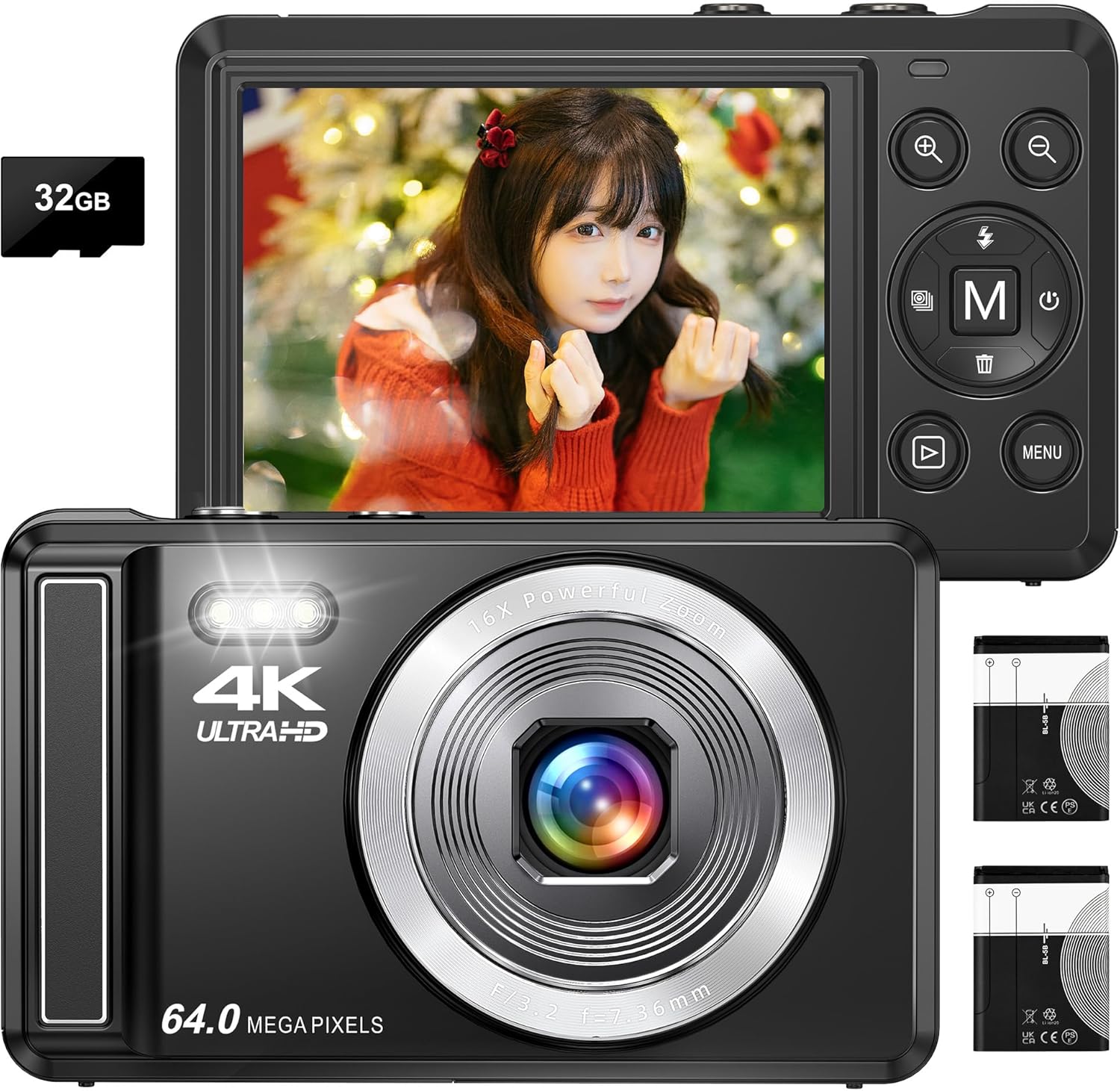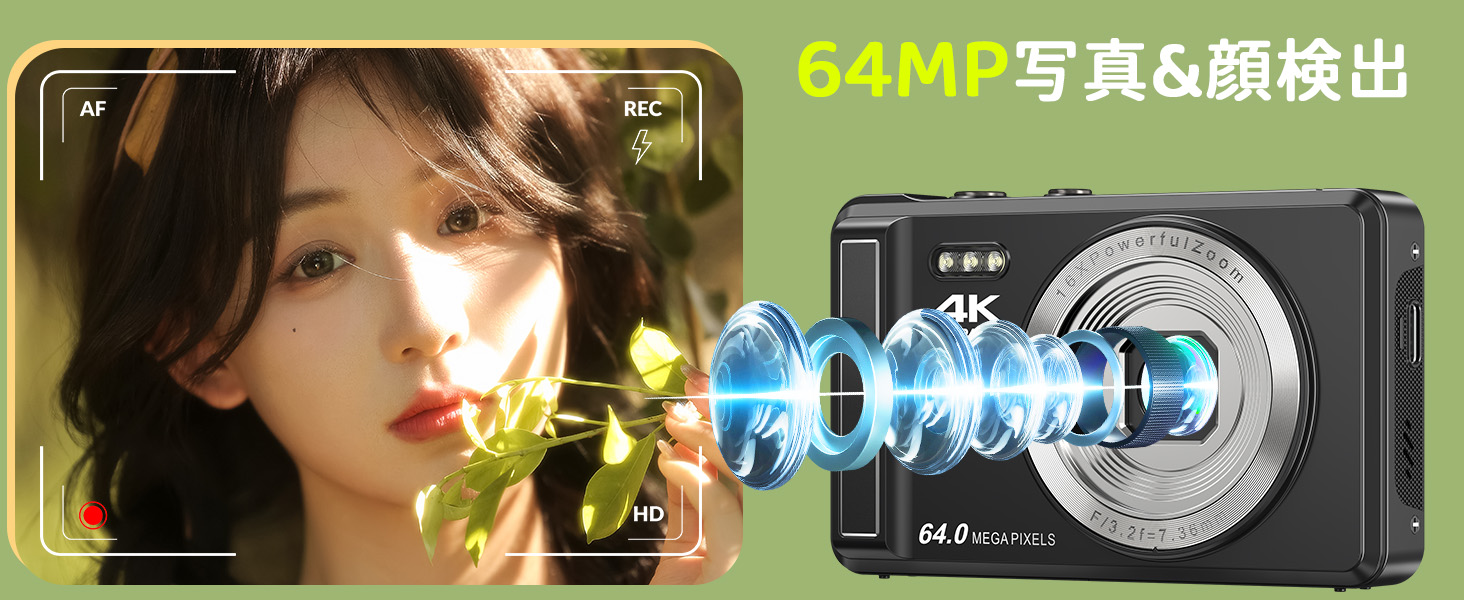 デジタルカメラ デジカメ コンパクト 4K 6400万画素 コンパクトカメラ AFオートフォーカス 16倍ズーム 32Gカード ウェブカメラ 2.8インチ大画面 AKM-247 爆買