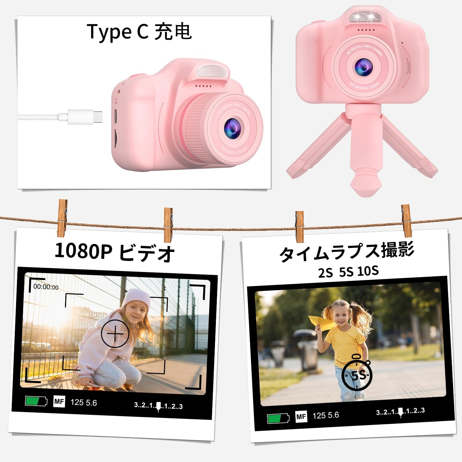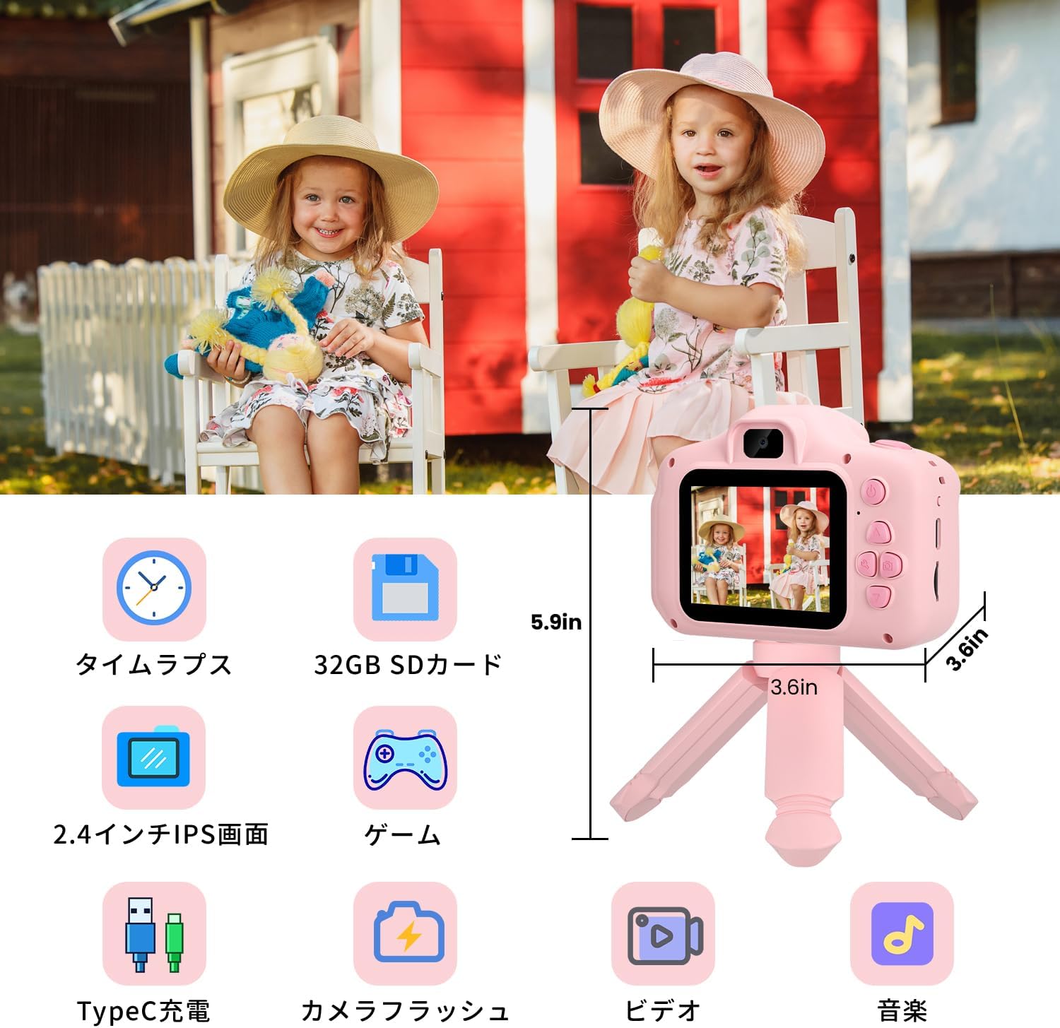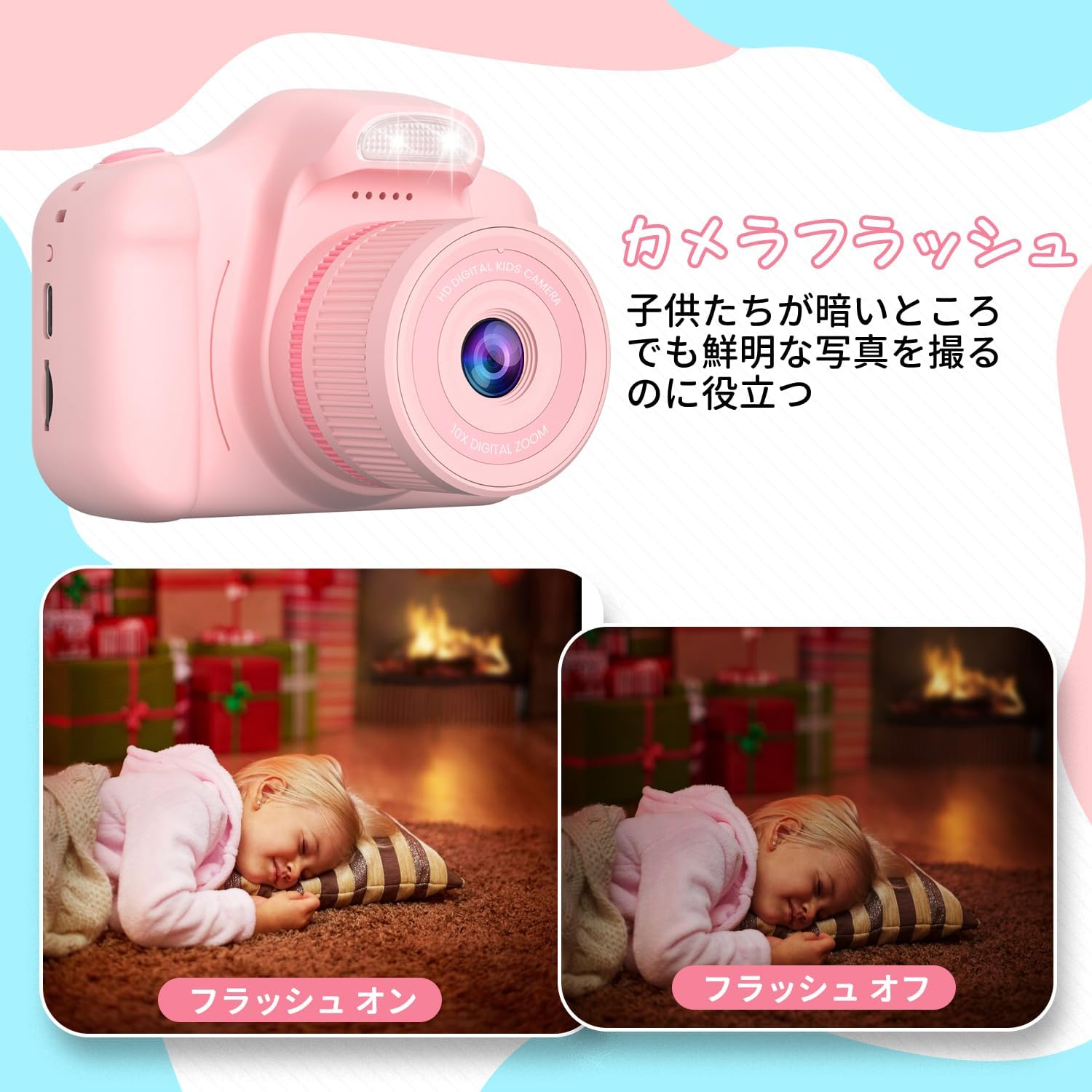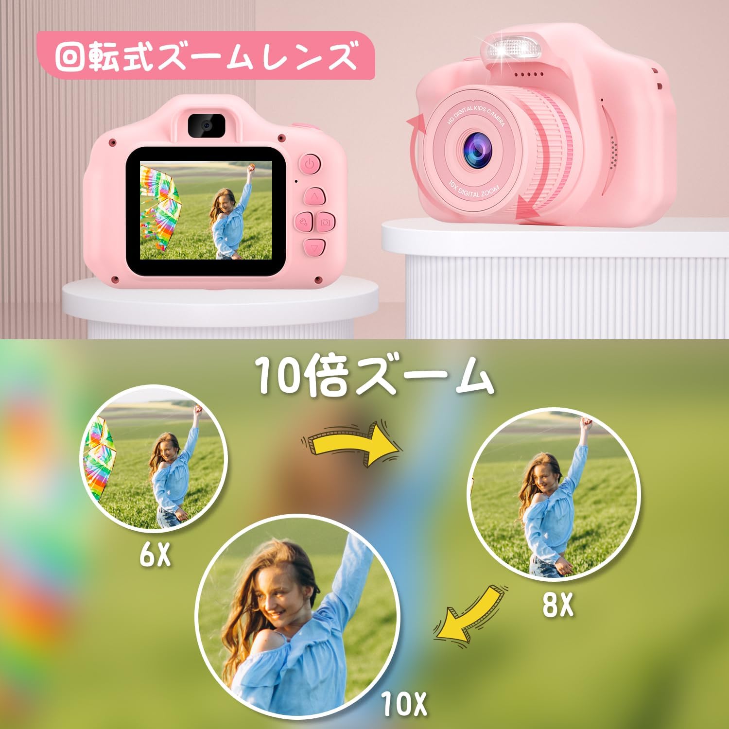 キッズカメラ 子供用 新バージョン 子ども向けデジタルカメラ 2.4インチディスプレイ搭載 マイク内蔵・フィルインライト付き スイベルレンズ付き10倍ズーム 子供の日プレゼント 4歳以上の子供に最適な写真練習用カメラ