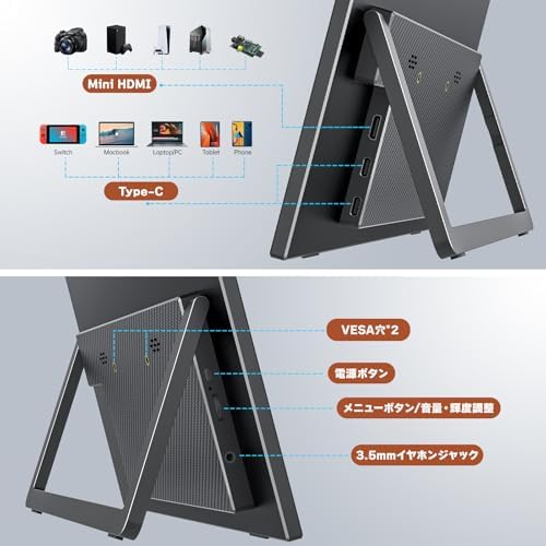 モバイルモニター 14インチ ポータブルモニター 超薄型 超軽量540g 高輝度400nit 100%sRGB広色域 自立型 収納ケース付 ゲーミングモニター