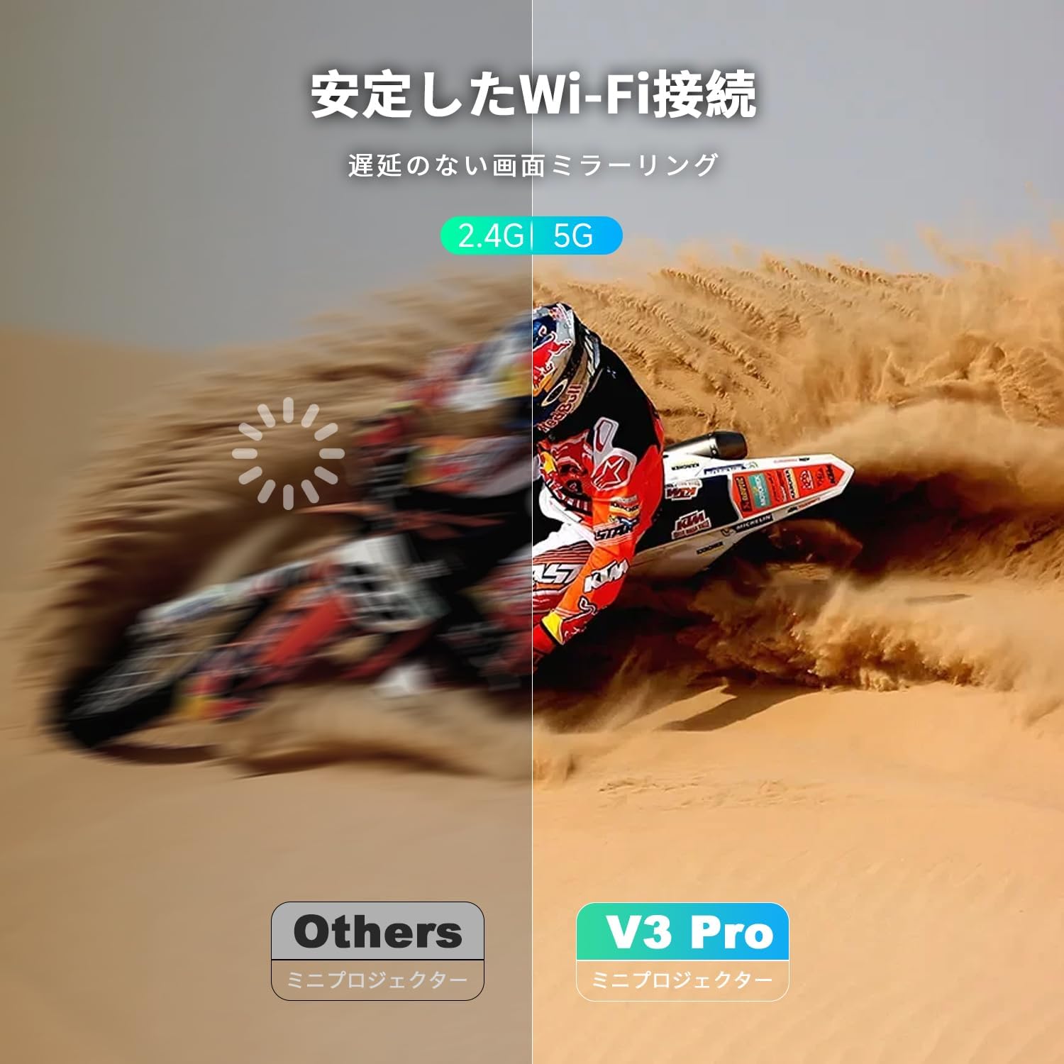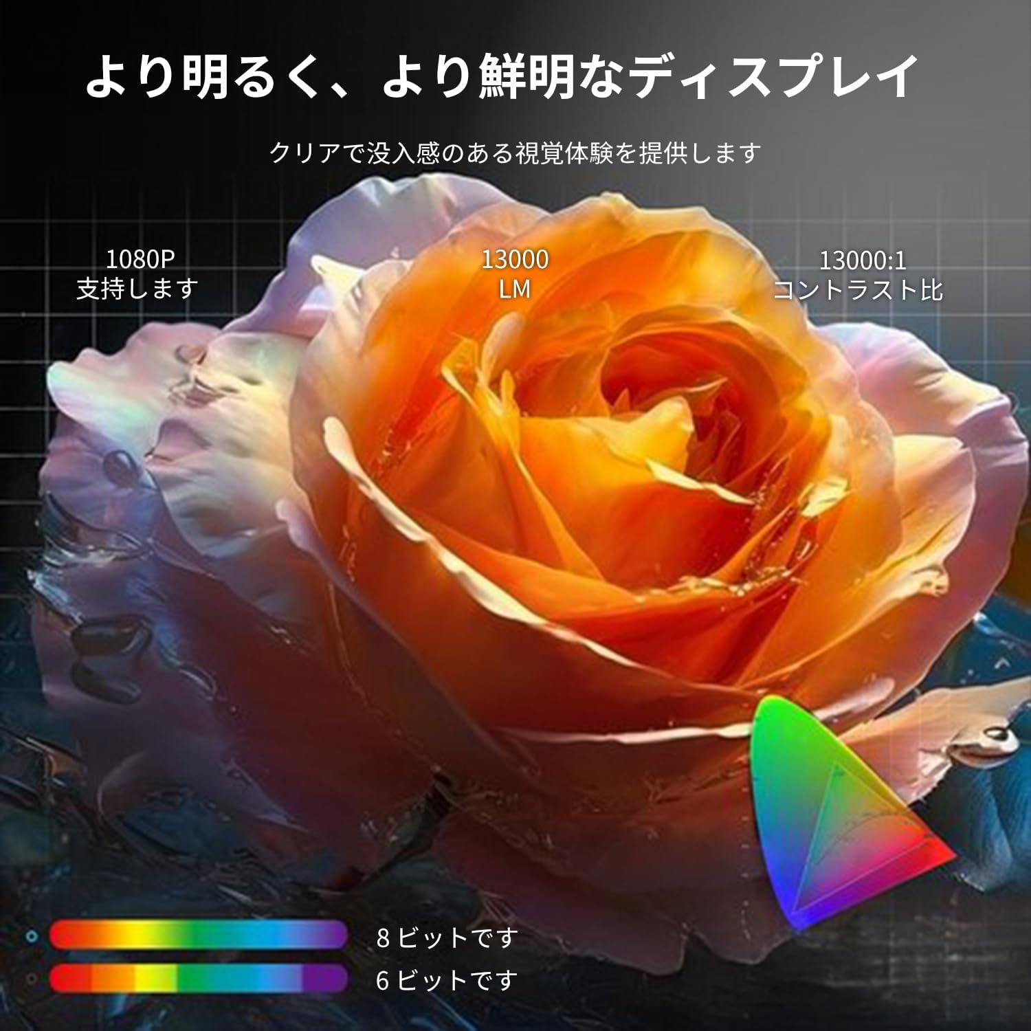 ミニプロジェクターは最新の1080p解像度をサポートして、5000:1コントラスト比、市場の同類のプロジェクターより50%高い輝度です。