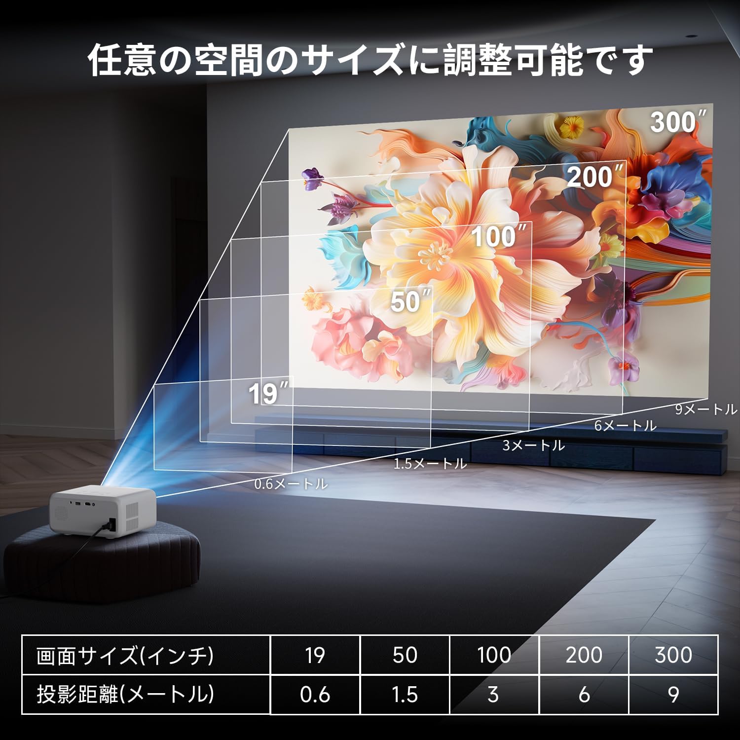 プロジェクター 家庭用 300インチの大型プロジェクションスクリーンで臨場感あふれる映像体験が可能です。