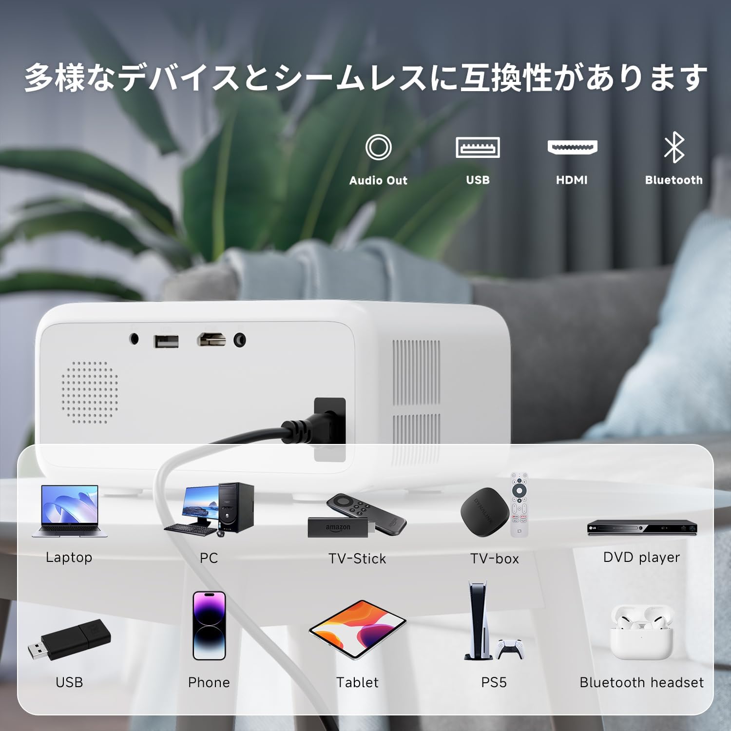 アップグレードされた双方向Bluetooth機能は、Bluetoothスピーカーとの無線接続に対応するだけでなく、このミニプロジェクターをBluetoothスピーカーとして使用し、スマートフォンから音楽を再生することも可能です。