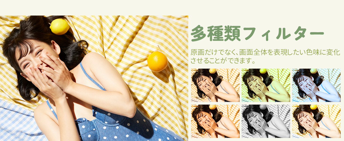 システムには複数のフィルタが付属しており、原図のほか、画面全体を表現したい色に変えることができます。