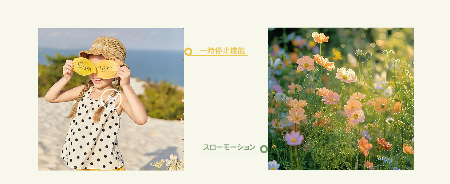 たとえば、庭の動物や植物の変化を観察したり、夜間の撮影、祝日の会合、低光環境下での短編制作に適している。