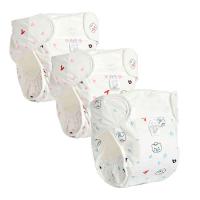 | ベビー用オムツカバーお得な3枚セットです。 内側に防水加工を施していない為、通気性は良いです。 左右からベルトでとめるタイプです。おむつ替えが簡単です。 赤ちゃんの体型にフィットするように後ろ腰部分にゴムを入れてます。活発に動き始めた赤ちゃんの、ねんね時のおしっこの背中からのつたいモレを防ぎます。 | |
