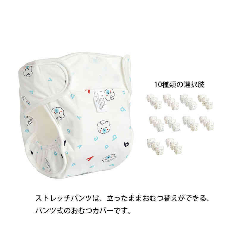 | ストレッチパンツは、 立ったままおむつ替えができる、 パンツ式のおむつカバーです。 股部分に防水布を縫い付けています。 (全面防水ではありません。) ストレッチ素材で伸びが良く、 湿気を通す、透湿性素材を使用しました。 たたんだ布おむつや成形おむつをはさんで ご使用ください。 カバー自体に吸水性はありません。 ウエスト部分を伸ばすと腹巻き代わりにもなります。 保育園でもご使用頂いております。 | |