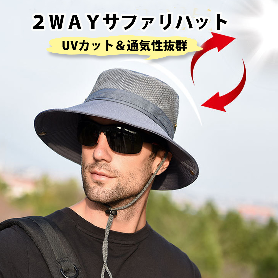快適メッシュ サファリハット UVカット つば広 日除け帽子 釣り ゴルフ 農作業 キャンプ 登山