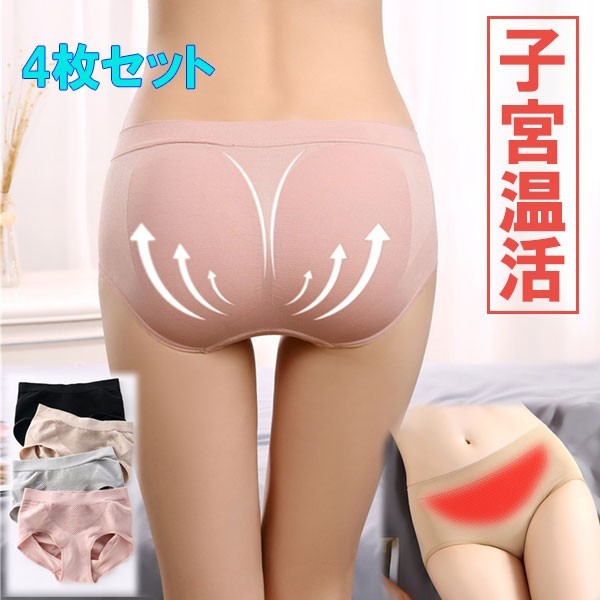 ショーツ 子宮温活 3D縫い目 無地 4枚 セット スタンダード パンツ プレーン マッサージデザイン レディース 伸縮性 美尻パンツ