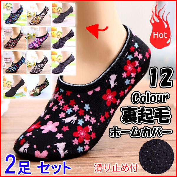 フットカバー 2足入り 保温 ソックス 滑り止め付き ホームカバー 裏起毛 レディース 婦人 メンズ 寒さ対策 冷え取り 靴下 防寒 暖かい ルームシューズ 部屋履き