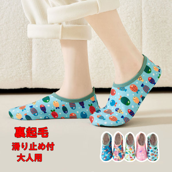 フットカバー 保温 ソックス 可愛い ホームカバー 裏起毛 滑り止め付 寒さ対策 冷え取り靴下 防寒靴下 暖かい ルームシューズ 部屋履き 魚 サル