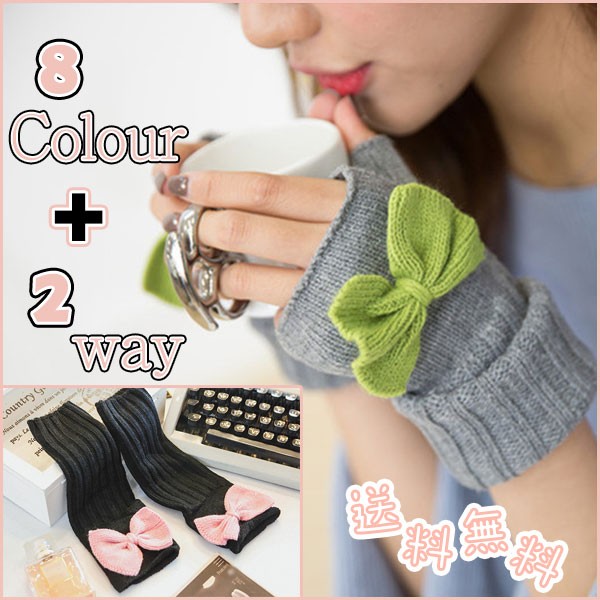 レディース2WAY 指なし 指カバー 秋冬 お試し ニット手袋 防寒 ロング丈
