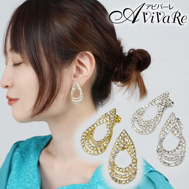 即納★ アクセサリー イヤリング ラインストーン フォーマル 結婚式 コーラス ステージ GD260/CN-GD028-3039 シルバー ゴールド 発表会 アビバーレ