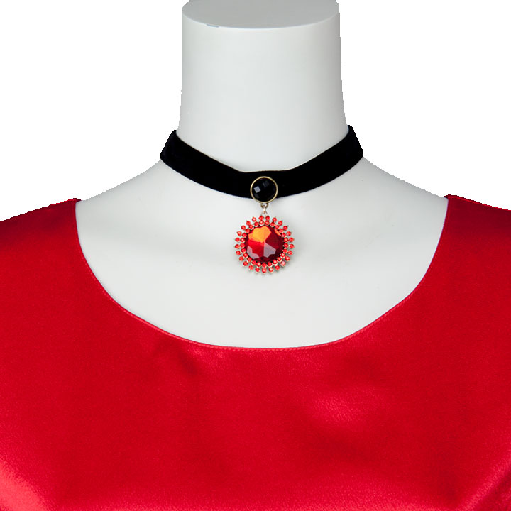 黒のベロアテープに太陽の様な赤のストーンが付いたチョーカー。 鮮やかな衣装に合わせても負けない存在感です。 普段使いもできて、装いをぐっと印象的にしてくれるアイテムです。 | |