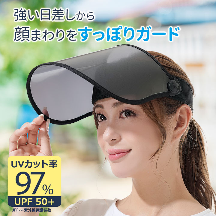 顔すっぽりUVカットサンバイザー[Z3086]UVカット 日焼け防止 紫外線対策 グッズ 春 夏 秋 日よけ クリアバイザー 角度調整