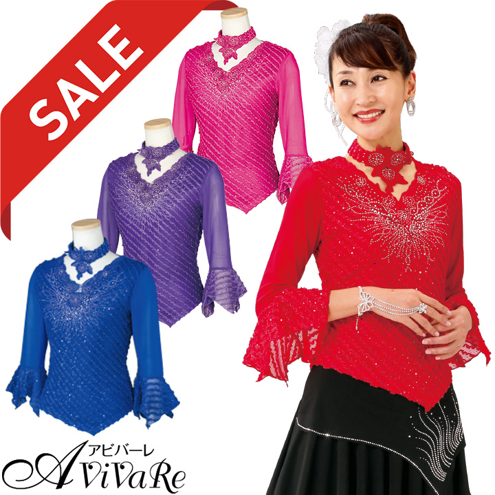 ■■■ スタッフおすすめポイント ■■■ ポイント1 鮮やかなカラーのプルオーバーは、コーラスやダンスのステージ、 フォーマルなパーティなど華やかな場面にぴったりの一枚。 ポイント2 身頃全体を小さなフリルとスパンコールで飾り、 胸元にはストーンと花のレースの花モチーフでよりエレガントに。 ポイント3 面ファスナーで簡単に付けられる共布のチョーカー付。 すっきりとVネックでの着こなしと、チョーカーでより華やかな着こなしの2通りが楽しめます。 ポイント4 お袖はメッシュで二の腕をシャープに見せ、背中はクロスストラップでエレガントに。 裾のアシメトリーのカッティングがシャープさを加え、お腹周りをカバーします。 | |