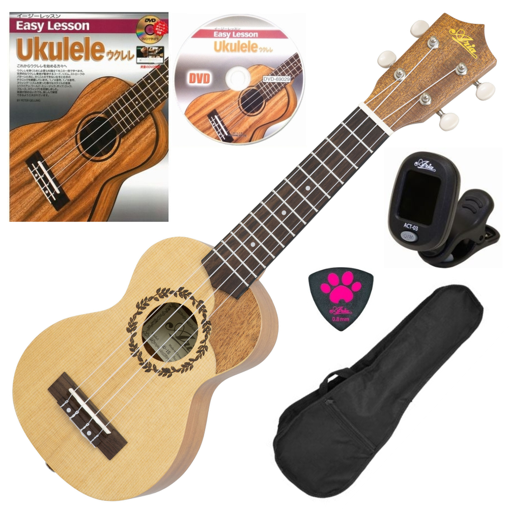 ウクレレ初心者セット Aria AU-1S チューナー ケース DVD付教則本 特別オーダー レーザー加工 ピックガード 牛骨ナット&サドル Aquila弦