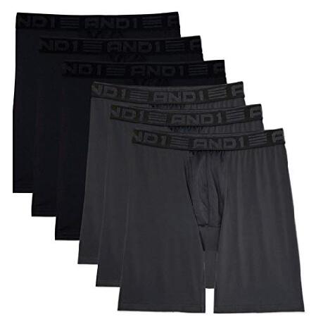 AND1 Black/Grey 9" Inseam 6 Pack ProPlatinum Performance Boxer Briefs - 3XL