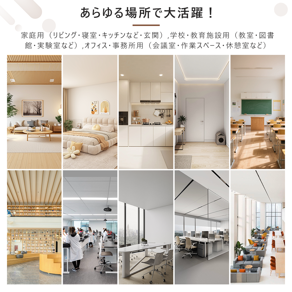 ●このシーリングファンライトは、無段階で調光・調色が可能(電球色、昼白色、昼光色)で、常夜灯モードも搭載。寝室、書斎、浴室など、さまざまなシーンに対応でき、1台で多機能を兼ね備えています。ダイニングキッチンの料理照明から、寝室の間接照明まで、用途に合わせて光の色や明るさを調整可能です。4畳〜6畳までの広さにも対応し、どんな空間にもぴったりフィット。明るさや色温度を自由に変えて、快適でリラックスできる空間を作り出します。