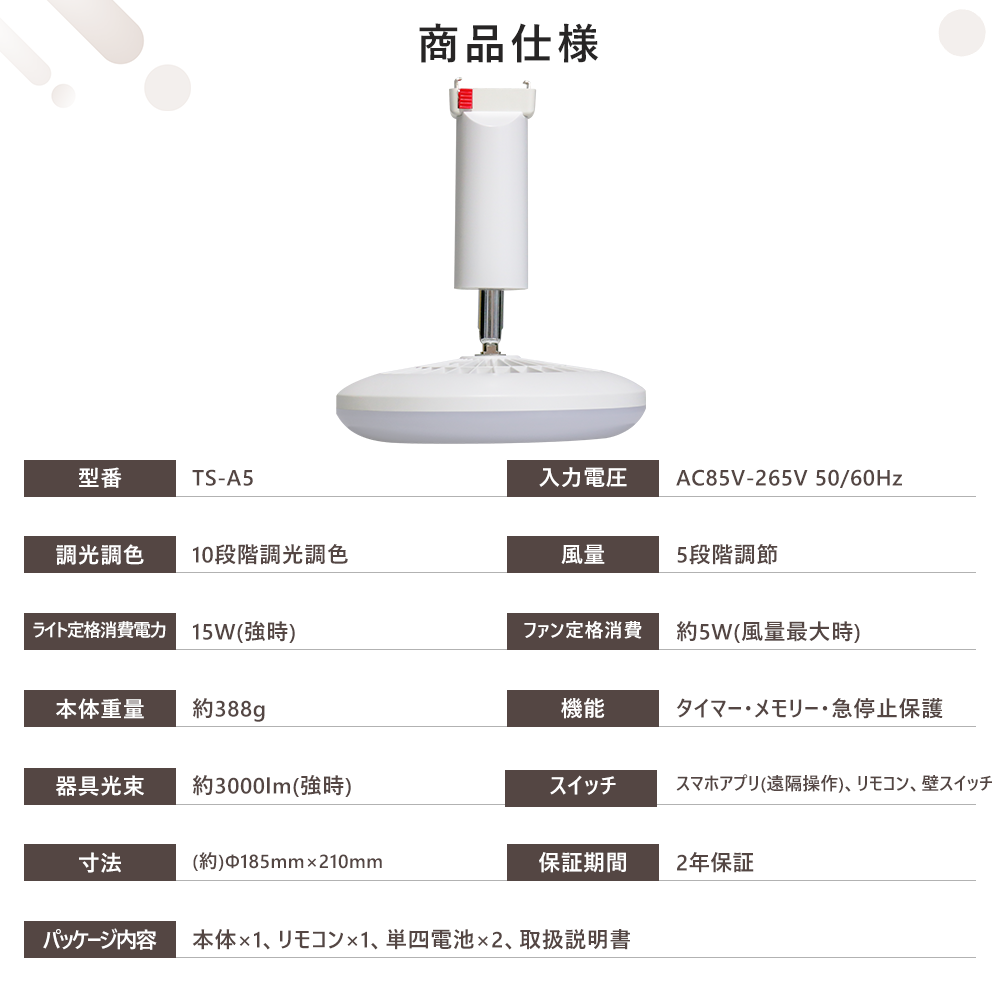 ☆消費電力(強時):ファン:5w/ライト:15w