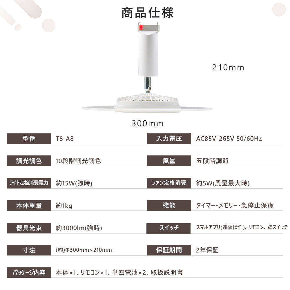 ・コントロールモード:スマホアプリ/リモコン/壁スイッチ