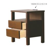 ナイトテーブル コンセント付 幅40cm アスコット40-2BR ブラウン アルダー無垢材