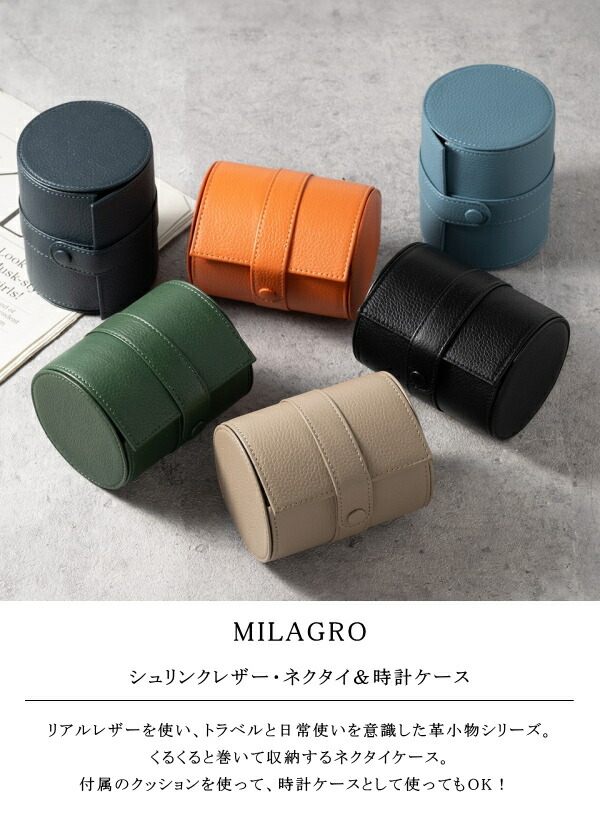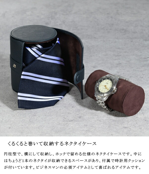 ※本製品は、筒状につくられた本牛革製のロール式のネクタイ&ウォッチ収納ケースです。