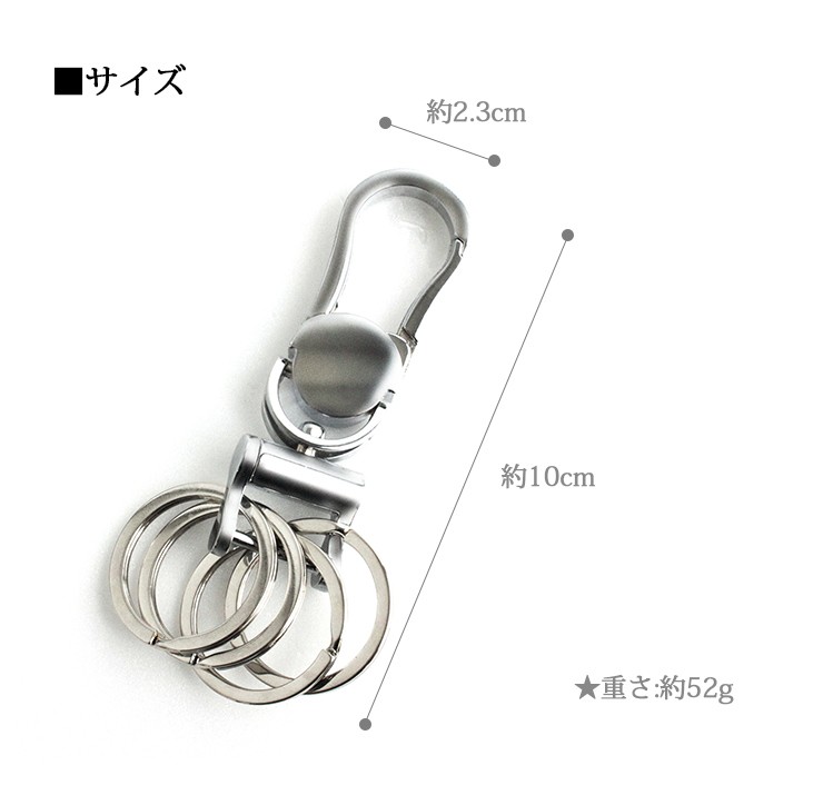 大きめのカラビナにリングが4つついたシンプルなデザイン。