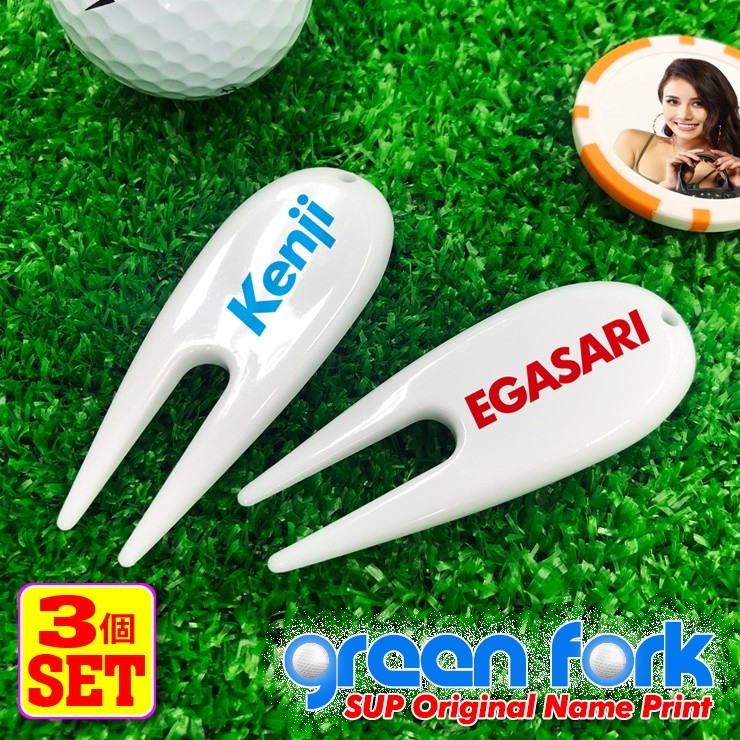 3個セット/オリジナル名入れ グリーンフォーク GOLF GREEN fork ゴルフ用品 ORIGINAL PRINT UVプリント オリジナル コンペ 景品 ギフト プレゼント