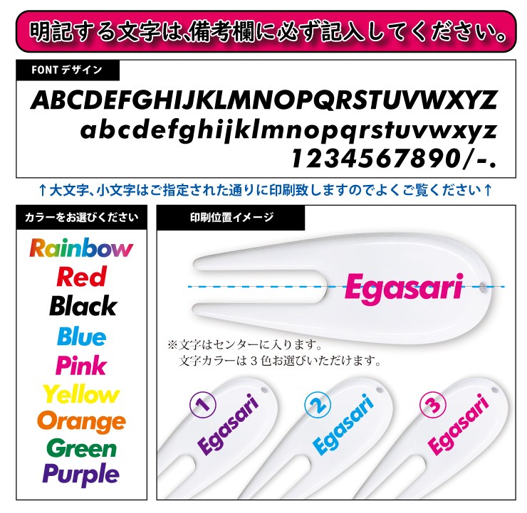 お好みの文字を、3色お好きなカラー選んでフォークにプリントいたします♪