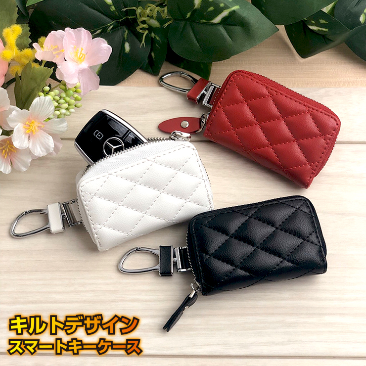 名入れ可能/キルトデザイン スマートキーケース 全3色 スマートキーカバー キーケース スマートキー メンズ レディース おしゃれ かわいい キルト風