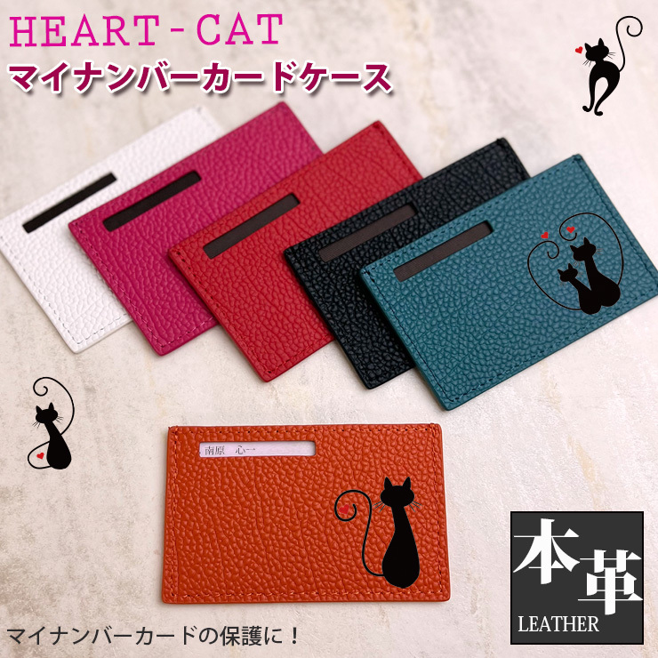 HEART-CATプリント 本革 マイナンバーカードケース 全10色 氏名 住所 個人番号 プライバシー保護 カード入れ スキミング マイナンバーカード入れ 猫