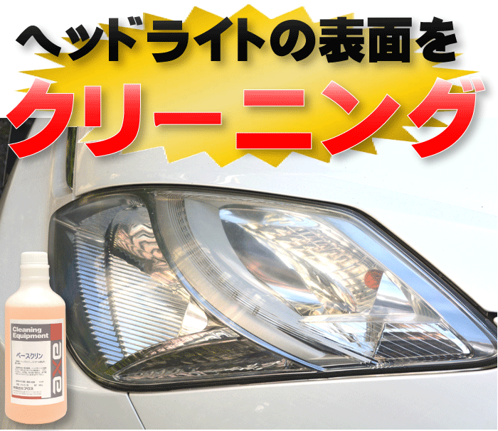 れません。このベースクリンを使い、ヘッドライトの黄ばみが落ちればヘッドライトクリーニングは完結し、コンパウンドやポリッシ