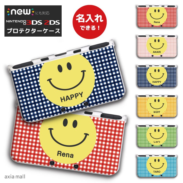 名入れできる new3DS LL カバー ケース new 3DSLL new 2DS LL 3DS LL カバー かわいい 大人 子供 キッズ おもちゃ ゲーム スマイル ギンガムチェック かわいい