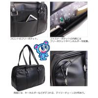 シンプルなボディにブランドロゴ刺繍が映える合皮スクールバッグ。