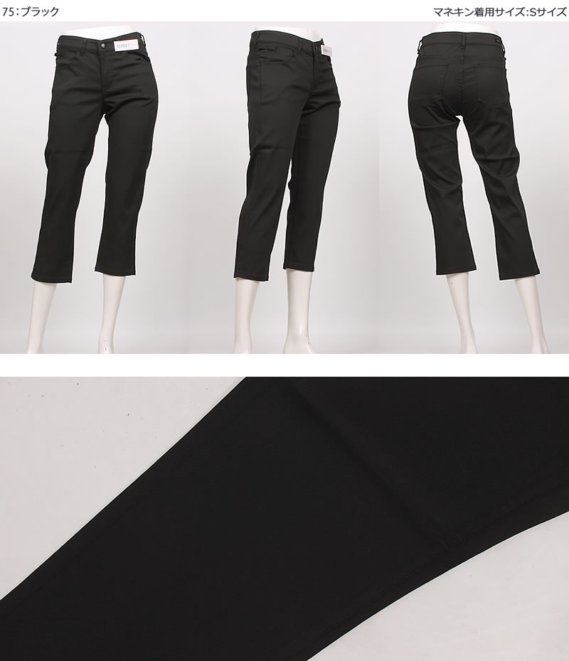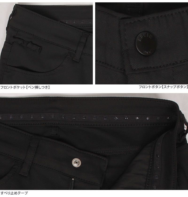 生地組織をドビー織にすることで、凹凸が生まれ、肌と生地の接地面が減り、常にドライタッチ薄手で軽いので暑い夏にぴったりなパンツ。シルエットはMEB002(スリムストレート)の腰周りをベースにした春夏らしく足首がすっきり見えるカプリ丈。ストレッチがウエスト部分も効いていて動きやすい。立ったり、しゃがんだりする事が多い仕事中でもウエストについたすべり止めで後ろ姿も安心。ストレスを感じることなくラクにキレイに快適に過ごせるハタラク女性のクロのパンツ。