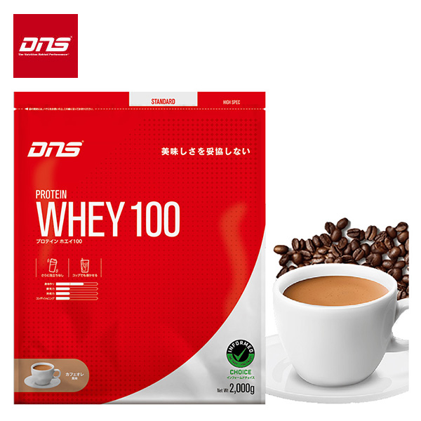 DNS プロテインホエイ100 カフェオレ風味 2000g (約57食分) ホエイプロテイン WHEY アンチ・ドーピング認証 粉末