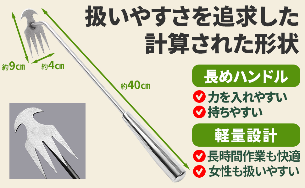 根こそぎ 草取りレーキ DIY 工具 道具 30cm 40cm 50cm 幅4cm 草刈り 草取り 除草 草抜き 園芸用品 ガーデニング用 ステンレス製 庭