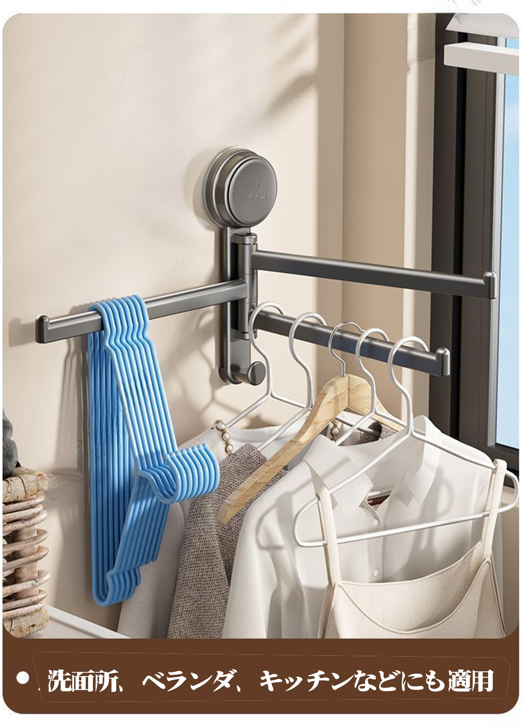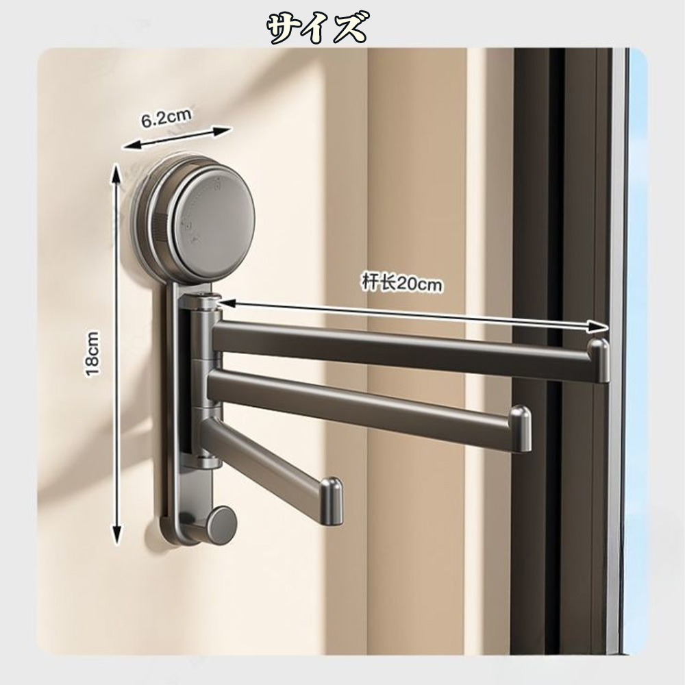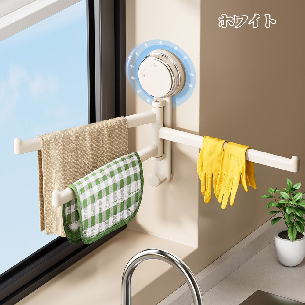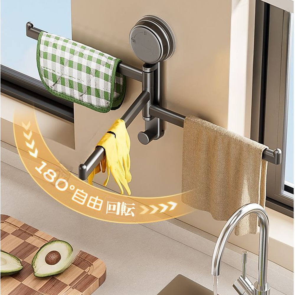 【180°自由回転】このタオルバーは、180°回転できるので、タオルとタオルの直接接触を防ぎ、清潔で衛生的です。