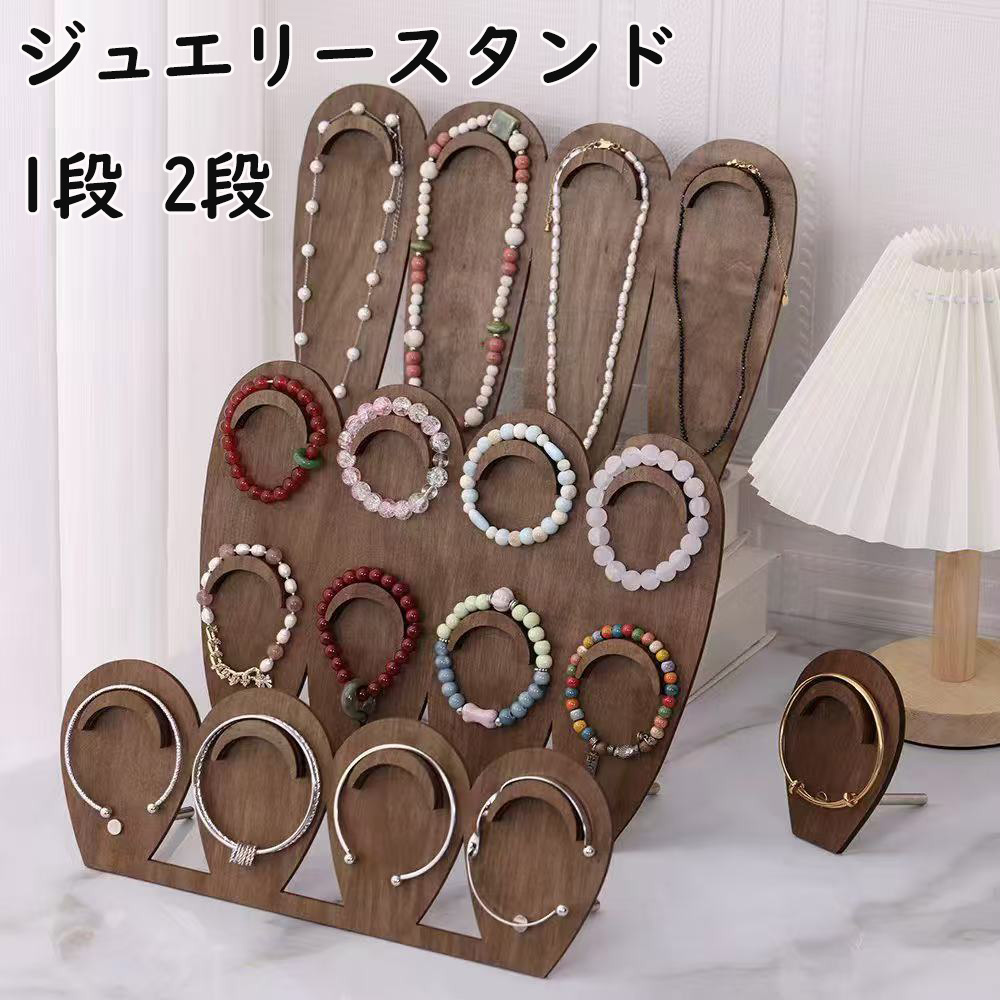 ジュエリースタンド 1段 2段 木製 ジュエリーディスプレイ ブレスレット ネックレス用 販売用 陳列小物 屋台 店舗 カウンター アクセサリー収納 整理