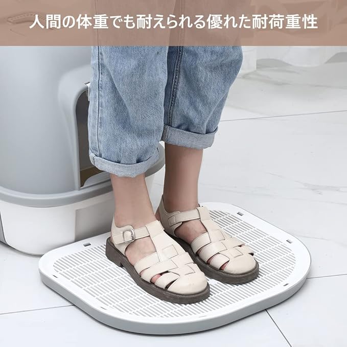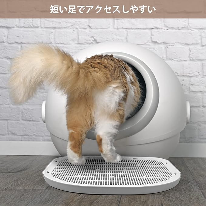 低背デザインになっているため、マンチカンやミヌエットなどの短足種の猫でも、ジャンプせずにスムーズにマットを通過して猫砂盆に入れます。幼猫から成猫まで、猫の体型を問わず使いやすさを実現しています。