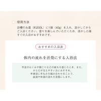 こちら使用方法浴槽のお湯(約200L)に1袋(40g)を入れ、溶かしてからご入浴ください。香りを楽しんでいただくため、溶かした後すぐの入浴がおすすめです。