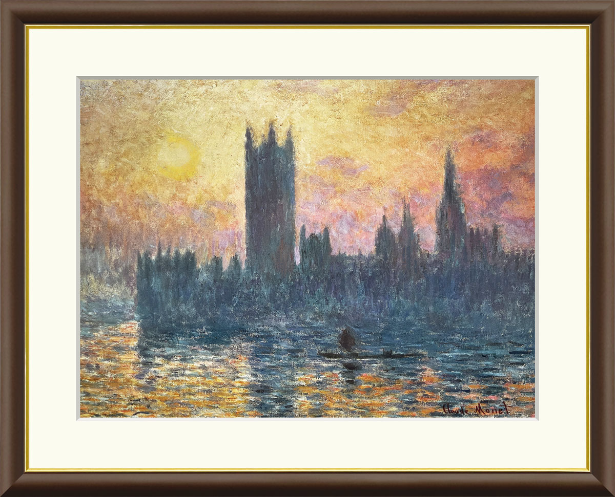 絵画 クロード・モネ 「国会議事堂、日没」 手彩仕上 高精細巧芸画 10年保証