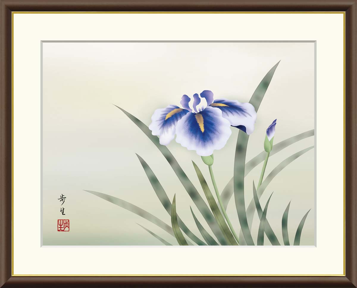 10年保証 絵画 版画 菖蒲 北山歩生 手彩仕上 高精細巧芸画 F4