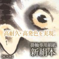 創業70年、掛け軸販売数日本最大級の掛け軸メーカー制作の掛け軸。掛け軸に使うオリジナル絹紙を使用し絵画を制作。手彩色仕上げ(一部に手彩で補色) 。制作元オリジナル絵画用絹紙「新絹本」により高発色・高耐久を実現。