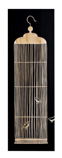 ウッド スカルプチャー アート バードケージ (ブラック) 絵画 壁掛け 壁飾り インテリア 油絵 花 アートパネル ポスター 絵 額入り リビング 玄関
